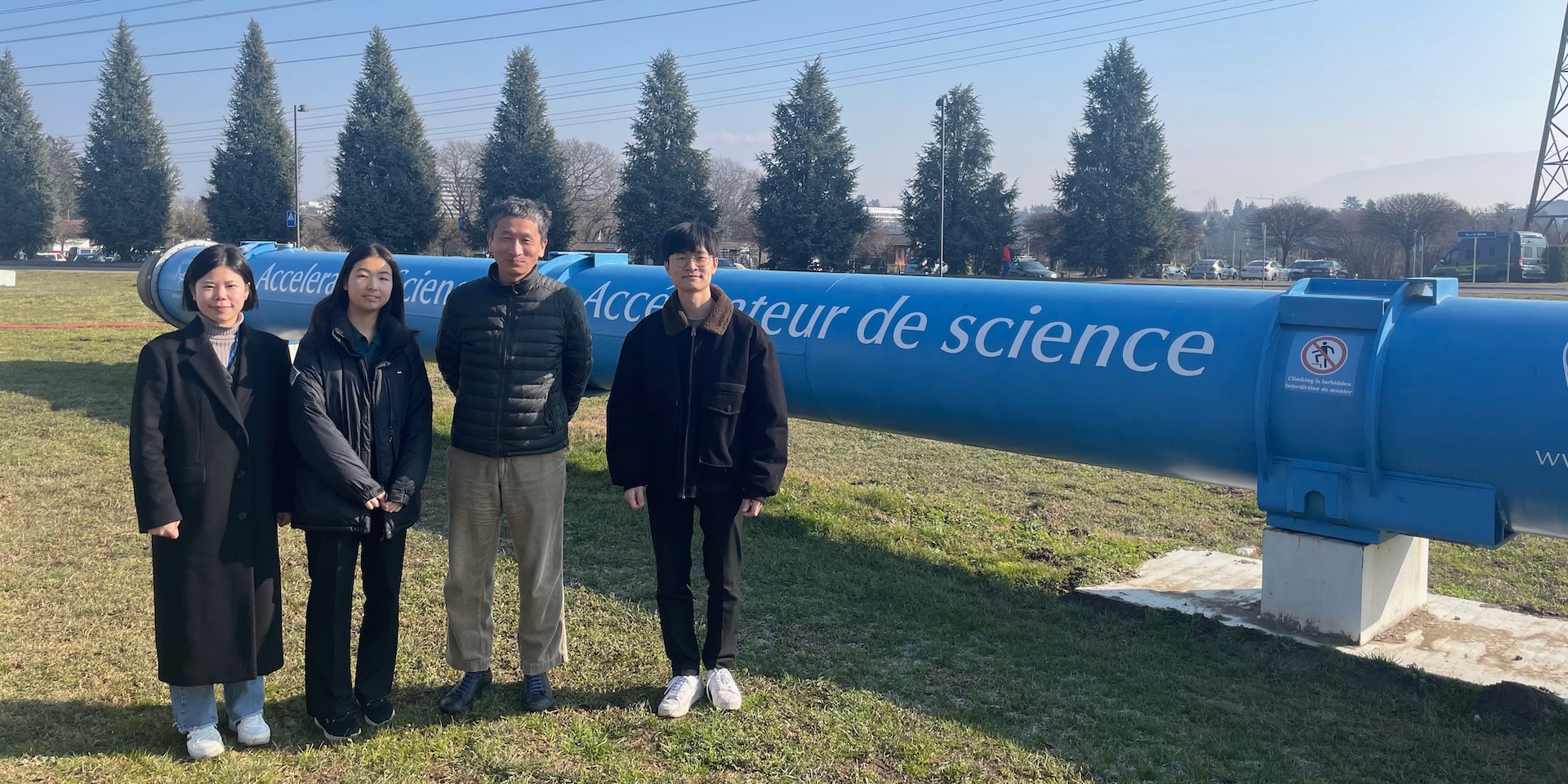 We are involved in the CMS experiment at the Large Hadron Collider (LHC) CERN. The LHC is located at the border between Switzerland and France. The LHC is used to accelerate protons up to near the speed of light and collides protons together. The CMS detector is situated around 100 m below the surface. We use this detector to detect particles from the collisions. From the proton-proton collisions at high energy, new particles can be created and decayed into stable particles immediately. We need to be detectives to figure out the culprits, new particles!